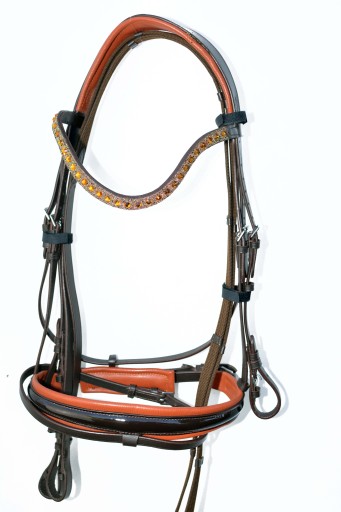 Ogłowi Anatomiczne profilowane roz.FULL Ogłowie wyprodukowane w zakładzie Rymarskim w Anglii .Wykonane z najwyższej jakości skóry bydlęcej bardzo miękkiej i miłej w dotyku ,wykonane w całości ze skóry Angielskiej , część potyliczna i naczółek poszyty miękko skórą ,aby zapobiec obtarciom .Ogłowie zapinane i regulowane jest na stabilne sprzączki , wykonane z bardzo dobrej nierdzewnej stali szlachetnej . Zapraszam do zakupu. Aukcja dotyczy ogłowia widocznego na zdjęciach .