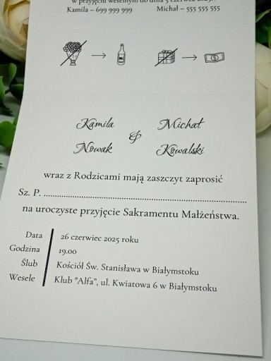 W środku zaproszenia możemy wpisać dowolny wierszyk, cytat.