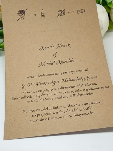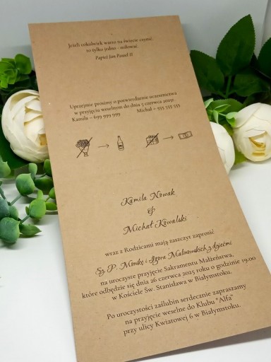 - Do zaproszenia dołączona jest ekologiczna brązowo-szara koperta.