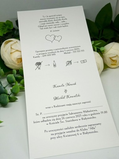 - Do zaproszenia dołączona jest biała koperta.