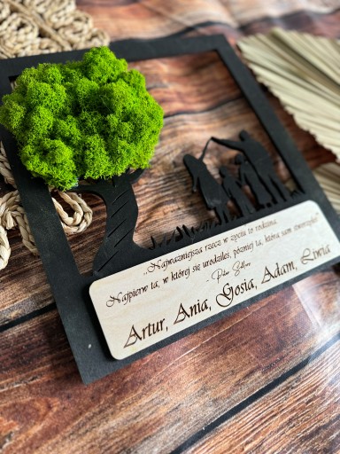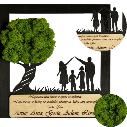 DRZEWKO BONSAI mech chrobotek DRZEWO ŻYCIA SZCZĘŚCIA obraz z MCHU RODZINA