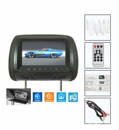 1 x wyświetlacz montowany za zagłówkiem samochodu
