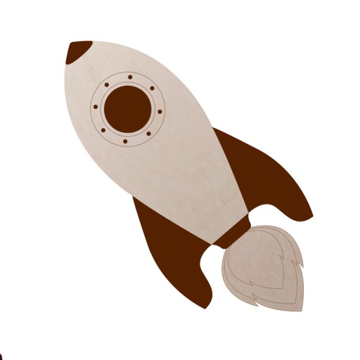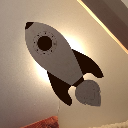 Energooszczędna drewniana lampka w technologii LED w rozmiarze L, idealna do dyskretnego doświetlenia pokoju dziecka. Rakieta LED, która w ciągu dnia pełni rolę dekoracji na ścianie, a gdy nadchodzi noc, zamienia się w funkcjonalne źródło światła w ciemności pokoju.