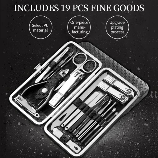 Мужской профессиональный набор для маникюра и педикюра из 19 средств по уходу.