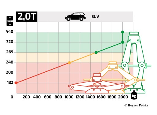 - wysokość podnoszenia: 98 - 442 mm, waga: tylko ok. 3,2 kg
