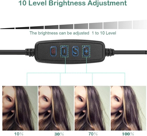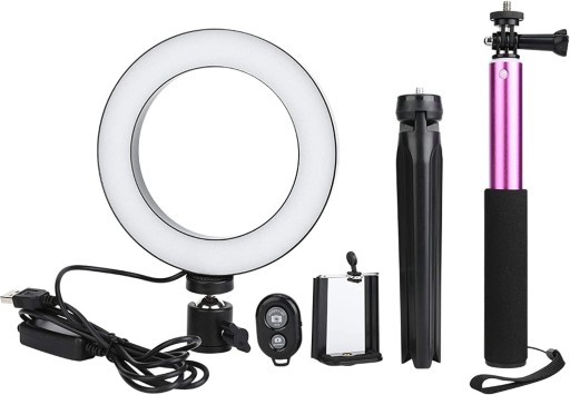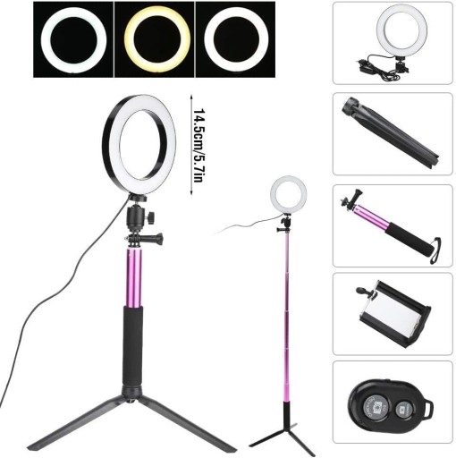 Selfie kij i statyw jest foldablde bardzo wygodny w obsudze i atwe do przenoszenia. Wyposaona w uchwyt telefonu telefon komórkowy moe by zamontowany na zacisku telefonu statywu na ywo pikna i fotografii. Zapewnia odpowiedni i zrównowaon naturalnego wiata co daje efekt przysony shadowless. 10 poziom ciemniania i trzech kolorów wiata ciepe wiato mikkie wiato biae wiato rónych efektów wietlnych. Usb. zasilacz nadaje si do urzdzeń które obsuguj Usb. porty takie jak laptop PC banku moc Usb. adowarka zasilacz sieciowy itp mona atwo kontrolowa przewód zasilajcy aby wczy wyczy zasilanie lub przeczy si do swojego ulubionego trybu owietlenia.