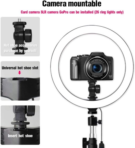 atwiej uzyskaj wicej najbliszych dziki 32 szt. biaych diod LED i 32 szt. ciepym diodom LED ten piercień LED jest janiejszy ni inne co moe pomóc przycign wicej wyznawców zapewniajc mikkie prawie bezcieniowe owietlenie. WIETLENIE DO WIETLENIA DWIKA dziki temperaturze barwowej 3 poziomom regulowane wiata mog by ciemniane w zakresie od 3500 K do 6500 K ciemnianie od 0 do 100 co uatwia kontrol koloru i kilku poziomów jasnoci regulowanych za pomoc pokrta. Obracany o 360 stopni W zestawie z uchwytem obracajcym si o 360 stopni do obracania wiata piercieniowego w tryb pionowy lub poziomy poziomy doskonale owietlony pod kadym ktem. Szeroki zakres zastosowań potna kompatybilno kompatybilna z wikszoci cyfrowych lustrzanek i smartfonów. Idealny dla profesjonalnego makijaystki twórców treci YouTube profesjonalnych artystów tatuau blogerów wideo mioników selfie Facebook Live Instagram na ywo na zatrzask. Zestaw zawiera 26 cm zewntrzne owietlenie LED piercieniowe 50 cm 120 cm 160 cm 210 cm stojak wietlny uchwyt na telefon jeli lampa piercieniowa nie jest odpowiednia dla Ciebie prosimy o z nami damy Ci najbardziej satysfakcjonujc odpowied.