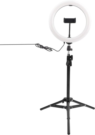 Lamp piercieniow LED mona zamontowa na uchwycie mona j nosi przy sobie a take w kadej chwili zdj z uchwytu gowic kulow statywu mona obraca o 360 stopni mona j regulowa pod dowolnym ktem. W lampie piercieniowej zastosowano wysokiej jakoci energooszczdne diody LED dobre odprowadzanie ciepa napd staoprdowy wysokie oddawanie barw zmikczajce ródo wiata i poprawiajce kolor skóry w fotografii portretowej. Lekka przenona konstrukcja wygodna w uyciu i noszeniu podczas podróy lub pracy na zewntrz. Szeroko stosowane w fotografii zewntrznej owietleniu wntrz portretach modzie fotografii reklamowej wideo itp. 10calowa konstrukcja lampy piercieniowej wiato wypeniajce bardzo praktyczne i wygodne.
