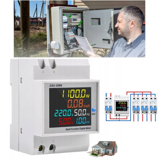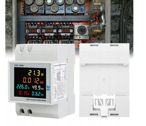 CYFROWY MIERNIK ENERGII ELEKTRYCZNEJ 6 W 1 LCD NA SZYNĘ DIN, D52-2066, 100A