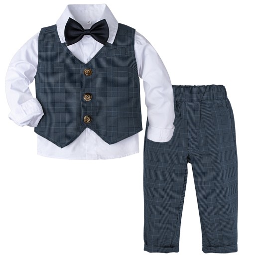 Projekt: baby boy dżentelmeny garnitur stroje do chrztu, modny 3-częściowy komplet garniturów (biała koszula z długim rękawem z muszką i kamizelką oraz spodnie )