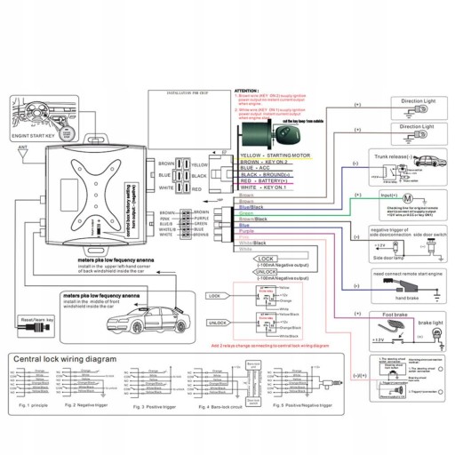 4. Napięcie robocze 12 V, odpowiednie dla większości pojazdów. W zestawie 2 piloty zdalnego sterowania dla dużej odległości sterowania.