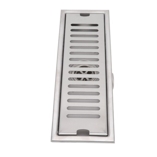 3. Materiał ze stali nierdzewnej: prostokątny odpływ podłogowy wykonany jest z wysokiej jakości stali nierdzewnej 304, powierzchnia odpływu jest szczotkowana, aby zapobiec korozji, zadrapaniom i rdzy, i jest trwała.