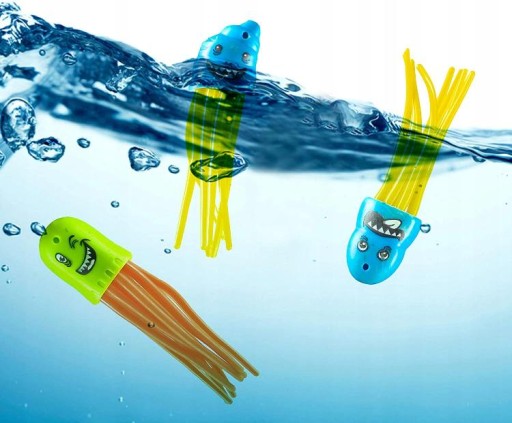 Zestaw zawiera: 15 tonących zabawek w jaskrawych kolorach wykonanych z wytrzymałego plastiku: 3 pierścienie do nurkowania, 3 zabawne buźki ośmiornicy 12,70 cm, 2 kule do nurkowania 17,78 cm, 2 nurkujące rybki 8,89 cm i 5 klejnotów. Łatwa do uchwycenia konstrukcja.