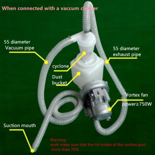 Filtr przemysłowy wykonany jest z twardego antystatycznego plastiku. Filtr powinien zostać zamontowany przed odkurzaczem co pozwali na na oddzielenie 90 - 99% pyłu, kurzu, pyłu drzewnego gdy zostanie podłączony filtr odkurzacz pracuje wydajnie i bezpiecznie, nie narażając silnika.