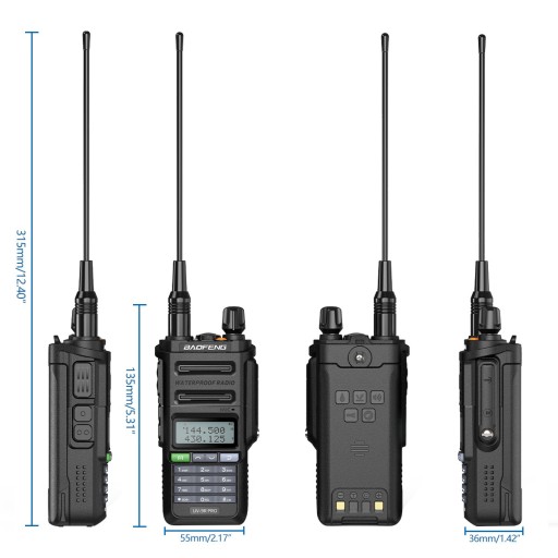 Baofeng UV-9R PRO to dwupasmowy radiotelefon (duobander) o mocy max. 8 watów z podwójnym wyświetlaczem, klawiaturą DTMF i funkcją Dual Watch. Moc audio - nawet do 8 W.