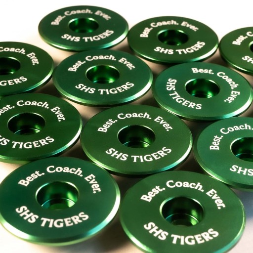 Spersonalizuj swój rower dzięki nowej nasadce na słuchawki! Te nakładki na słuchawki są wykonane z anodyzowanego aluminium, a Twój tekst zostanie wygrawerowany laserowo z doskonałą szczegółowością. Laser usuwa anodowaną powłokę odsłaniając aluminiowy materiał. Proszę podać tekst na górze (linia 1) i na dole (linia 2). Większa liczba liter spowoduje mniejszą czcionkę, aby cały tekst zmieścił się w czapce. Łatwa instalacja: po prostu zdejmij obecną nasadkę i użyj tej samej śruby z roweru, aby zainstalować nową nasadkę!
