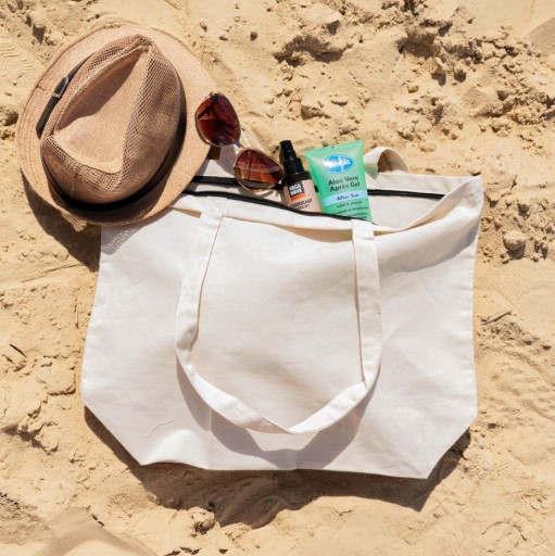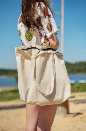Torba Bawełniana 51x15x38 ECRU 220g z zamkiem ZAKUPOWA POJEMNA EKO
