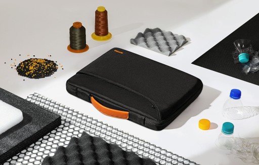 Przednia kieszeń torby Tomtoc Defender A22 ma jedną komorę z zaczepem na klucze/AirTag i zamkami wyprodukowanymi przez japońską markę YKK. Jest idealna na dokumenty, wykonana z recyklingu butelek z eleganckim designem i wygodną rączką z sztucznej skóry.
