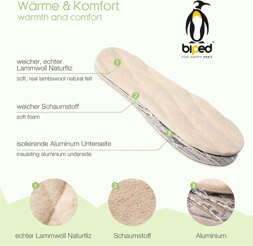 biped 2 pary wkładek termicznych z aluminiowym spodem i prawdziwą wełną owczą do butów dziecięcych – ocieplające wkładki do butów – zapewniają solidną ochronę przed zimnym podłożem
