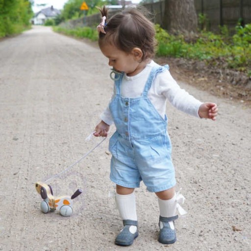 Polarny Drewniany Piesek na sznurku od firmy Viga Toys sprawdzi się jako dodatkowa zachęta do chodzenia dla dzieci, które uczą się stawiać pierwsze kroki. Modna i stonowana kolorystyka idealnie wzbogaci posiadaną kolekcję zabawek.