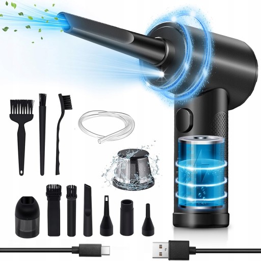 - ☑️ Z 6 różnymi wymiennymi dyszami i szczotkami. Dysze i szczotki można wymieniać w razie potrzeby, idealne do czyszczenia kurzu, włosów i brudu z sof, dywanów, biurek, laptopów, klawiatur itp., wygodne do stosowania w samochodzie, domu i biurze.