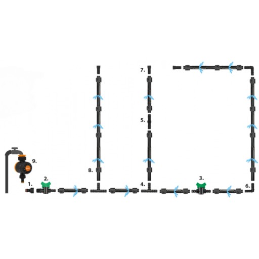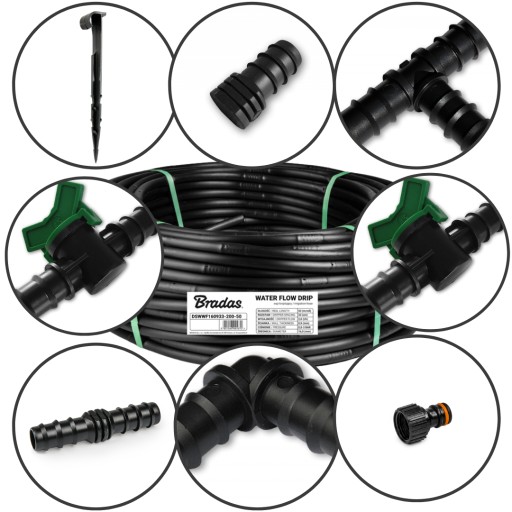 Zestaw elementów mocujących: Ułatwia instalację węża kroplującego, zapewniając stabilne i bezpieczne umocowanie na obszarze ogrodu.