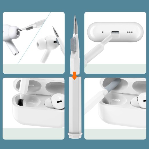 - Flokowana gąbka to doskonałe narzędzie do czyszczenia etui do ładowania słuchawek, a metalowe końcówki igieł i szczoteczki o dużej gęstości doskonale nadają się do czyszczenia otworów dźwiękowych w słuchawkach.