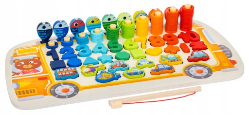 ✅ Autobus Drewniana Układanka Cyferki Gra Rybki