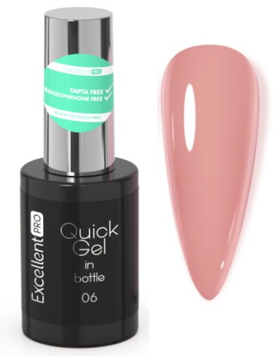 EXCELLENT PRO QUICK GEL IN BOTTLE 006 - to jednofazowy żel w kolorze ciemniejszego, chłodnego różu. Zamknięty w buteleczce produkt, którym przedłużysz i nadbudujesz paznokcie na szablonie oraz tipsie. Nadaje się również do wyrównywania i utwardzania naturalnej płytki. Wysoce samopoziomujacy się produkt o rzadkiej konsystencji, dzięki któremu wykonasz paznokcie w ekspresowym czasie metodą bez piłowania. Odporny na uszkodzenia o doskonałej przyczepności spowoduje, że stylizacja będzie trwała przez wiele tygodni jej noszenia. Aplikacja bezpośrednio z butelki pędzelkiem lakierowym pozwoli na oszczędność czasu oraz przyrządów potrzebnych do wykonania manicure żelowego tj. np. pędzelek.