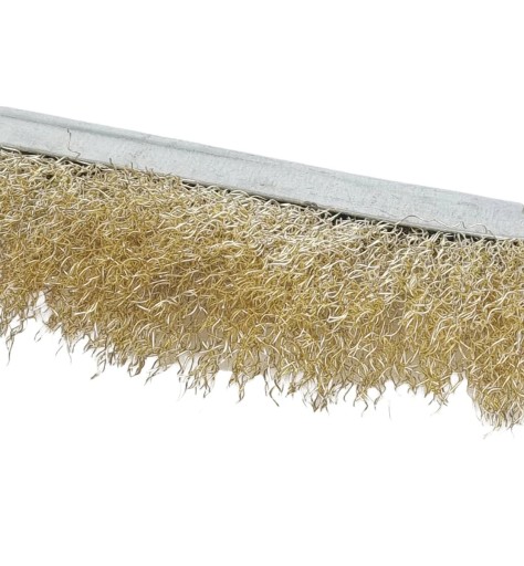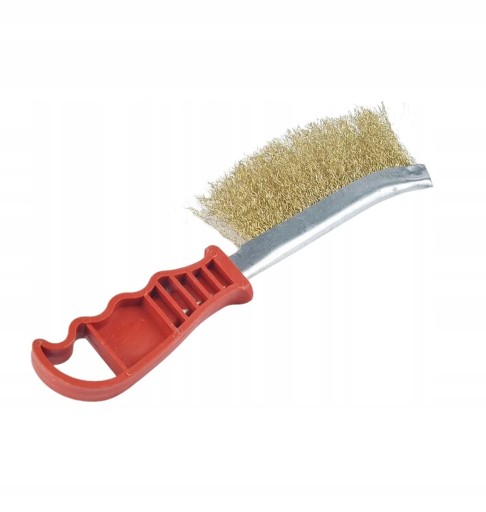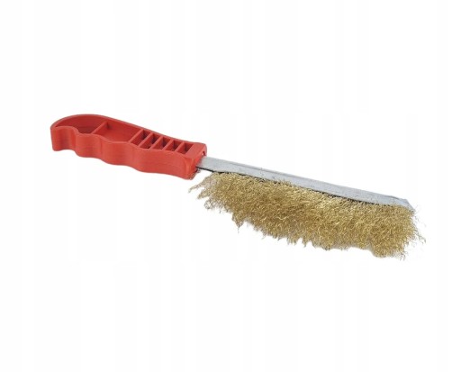 - Szczotka wykonana została z karbowanego, mosiężnego drutu oprawionego w metalowy uchwyt.