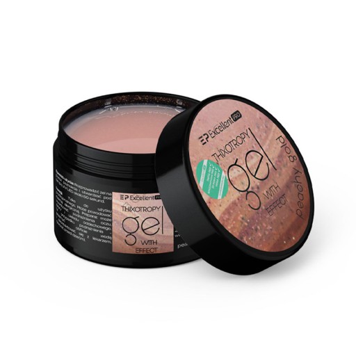 EXCELLENT PRO THIXOTROPY GEL WITH EFFECT PEACHY GOLD - to jednofazowy, budujący żel w brzoskwiniowo-beżowym kolorze z dodatkiem złotej drobinki. Przepiękny kolor roku 2024, podkreślony dodatkiem złotego brokatu pozwoli na stworzenie bardzo szybkiej i efektownej stylizacji. Doskonale sprawdzi się jako baza pod różnorakie zdobienia. Dzięki specjalnie stworzonej formule produkt rozkłada się bardzo przyjemnie a jego tiksotropowe właściwości sprawiają, że żel nie spływa na skórki, co zapewnia pełną kontrolę nad aplikowanym produktem i pozwala na wydłużony czas pracy nim. Ten samopoziomujący się żel doskonale nadaje się do każdego rodzaju przedłużeń na szablonie oraz tipsie a także do utwardzania naturalnej płytki. Idealny do zacisku, nie odkształca się podczas polimeryzacji. Niezwykle trwały i odporny żel z przepięknym efektem zapewni szybką i łatwą pracę, bez obaw o pękanie i wykruszanie się produktu.