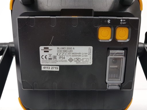 Przenośny akumulatorowy naświetlacz LED BLUMO 2000 A Zintegrowane głośniki Bluetooth 2 x 3 W o bardzo dobrej jakości dźwięku. Zawsze jasne światło robocze dostępne również tam, gdzie nie ma możliwości podłączenia do sieci elektrycznej. Wymienny akumulator Li-Ion ze wskaźnikiem ładowania i stanu akumulatora. 3 tryby świecenia: 100%, 50% i 10% mocy umożliwia wydłużenie czasu świecenia.