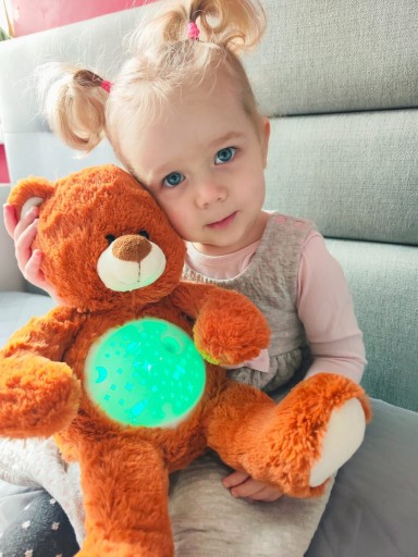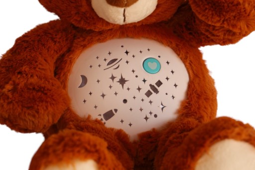 - Łatwość utrzymania w czystości: Projektorek można łatwo wyjąć, co umożliwia pranie misia.
