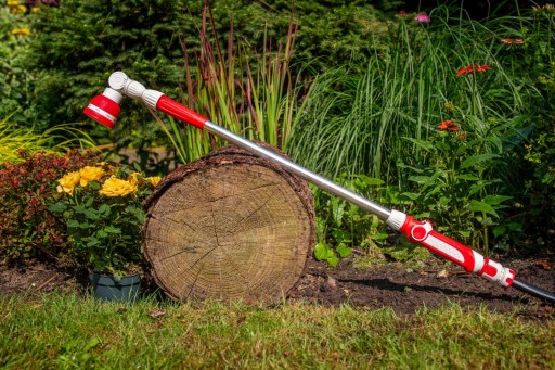 Zraszacz posiada płynną regulację strumienia wody, a głowica posiada 8 funkcyjny przełącznik rodzaju strumienia.