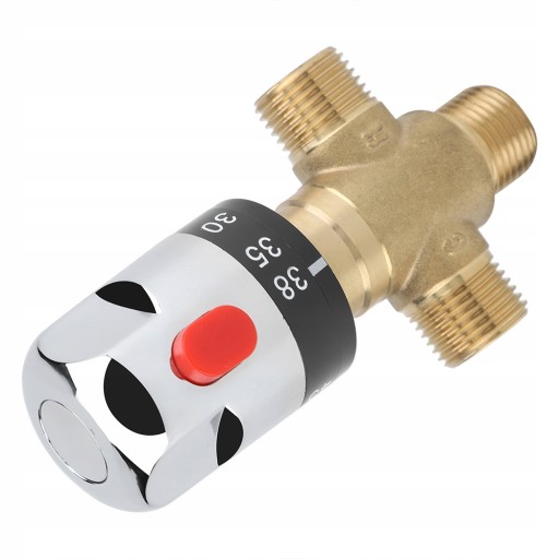 Ten termostatyczny zawór mieszający jest łatwy w instalacji. Termostat na zaworze można ustawić na 38℃ za pomocą wyłącznika bezpieczeństwa, który można zwiększyć do maksymalnej wartości 42℃.