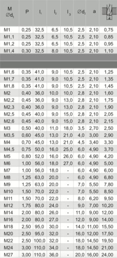 - Maksymalna głębokość gwintowania (l3): 27 mm