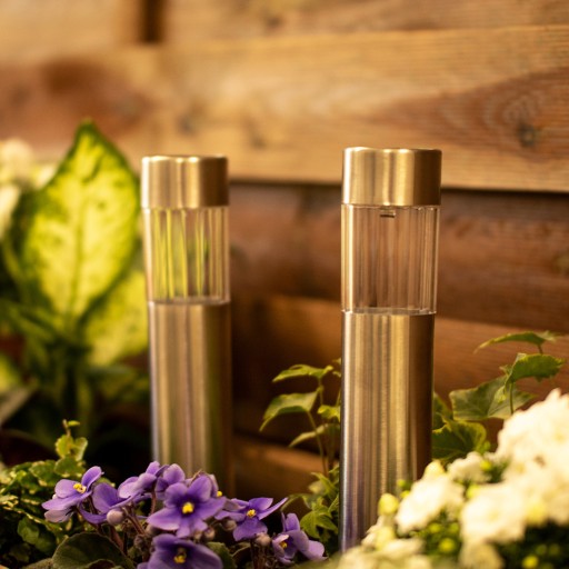 Zestaw 5 lamp solarnych wodoszczelnych (IP44) w eleganckim srebrnym kolorze stanowi doskonałe dekoracyjne, jak i praktyczne oświetlenie dla Twojego ogrodu. Doskonale podkreśli atmosferę otoczenia domu, dodając niepowtarzalny klimat poprzez niezwykłą grę świateł i cieni, a przede wszystkim, dzięki nietypowej budowie.