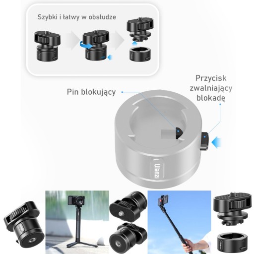 ULANZI C016 to zestaw pozwalający na korzystanie z dobrodziejstwa szybkozłączki Go_Quick II w czasie używania jedynie sprzętu z montażem na gwint 1/4 cala.
