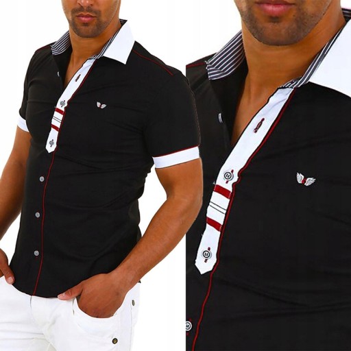 Koszula Męska Codzienna Casual Kontrast 9008 black