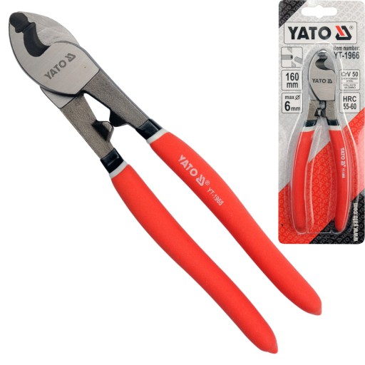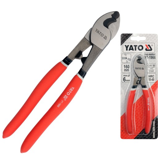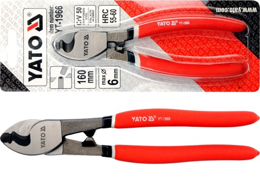 Szczypce YATO przeznaczone są do przecinania przewodów aluminiowych i miedzianych do 6 mm. Odkuwane na zimno ze stali CrV 50. Szczęki szlifowane i hartowane indukcyjnie do 55-60 HRC. Rękojeści zabezpieczone trójwarstwową osłoną ze specjalnej antypoślizgowej pianki technicznej.