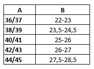 B - Długość stopy w cm.