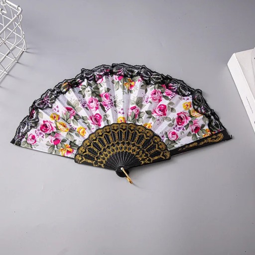 ВЕЕР С КРУЖЕВОМ, СЛОЖЕННЫЙ ДЛЯ ЖАРКОГО ЛЕТА, ДЕКОРАТИВНЫЕ ИСПАНСКИЕ УЗОРЫ, ЦВЕТЫ