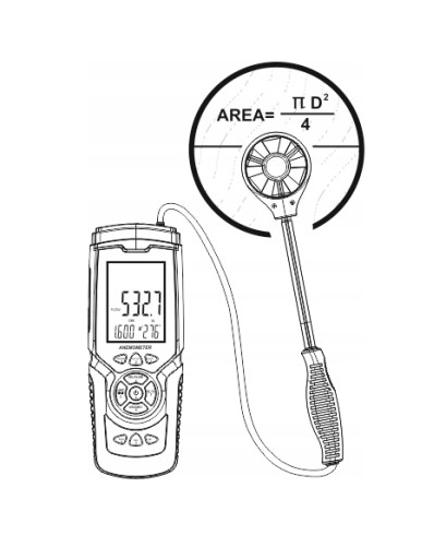 Ergonomiczna budowa anemometru pozwala na wygodne użytkowanie go jedną ręką.