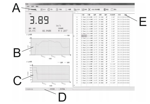 - Pomiar aktualnej prędkości, temperatury i wilgotności powietrza.