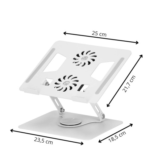 Dzięki wbudowanym wentylatorom, podstawka usprawnia również odprowadzanie ciepła z urządzenia i zapobiega jego przegrzaniu.