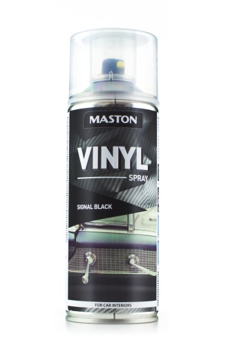 Farba w sprayu Maston Vinyl do renowacji lub przemalowania wnętrza samochodu, np. winylowych lub skórzanych siedzeń, desek rozdzielczych, paneli drzwiowych, manetek i konsol.