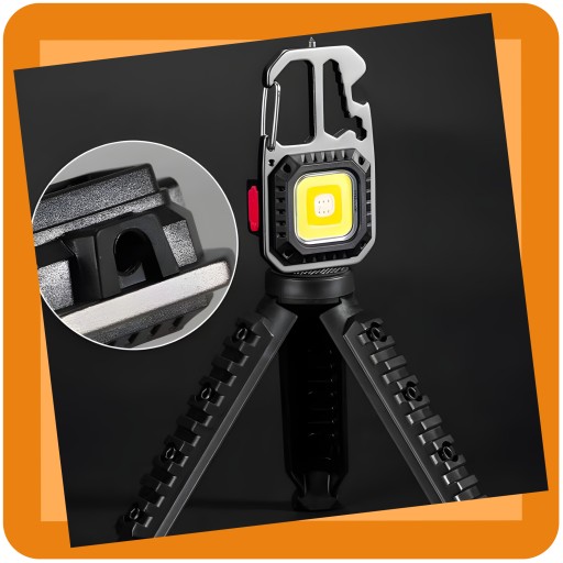 META-PRO MULTITOOL COB LIGHT to wielozadaniowa lampka LED z karabińczykiem do przypięcia do paska lub plecaka. Oferuje 6 trybów świecenia, w tym czerwone światło awaryjne. Pełni także funkcję multitoola z kluczem nasadowym, wkrętakiem, zbijakiem do szyb i otwieraczem do butelek. Zasilana 500 mAh baterią, działa do 3 godzin na jednym ładowaniu. Zestaw zawiera składany statyw. Idealny prezent dla każdego, niezależnie od wieku czy stylu życia.