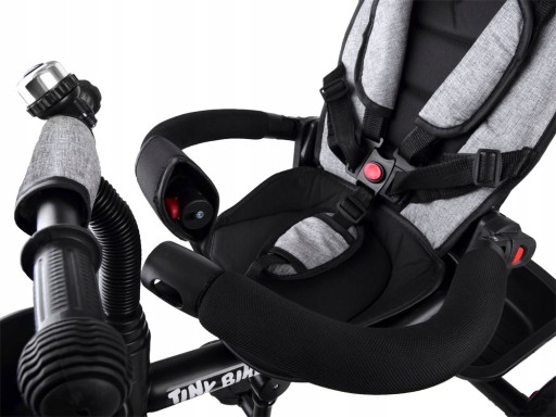 Rowerek Tiny Bike jest wielofunkcyjny i rośnie razem z dzieckiem! Gdy dziecko jest malutkie rowerek może być sterowany przez rodzica za pomocą drążka z uchwytami. Steruje się nim naprawdę wygonie, a dorosły ma pełną kontrolę nad pojazdem. Na późniejszym etapie, gdy malec troszkę podrośnie i dosięgnie nóżkami może swobodnie pedałować, a dzięki funkcji "wolnego koła", rodzic dalej zachowa kontrolę nad pojazdem. Później można zdemontować niepotrzebne elementy tak aby stworzyć dziecku wygodny trójkołowy rowerek, idealny do pierwszej nauki jazdy na rowerze. Kierownica rowerka posiada na końcach gumowe rączki zapobiegające wyślizgnięciu się kierownicy oraz zapewniające bezpieczeństwo i wygodę podczas jazdy.