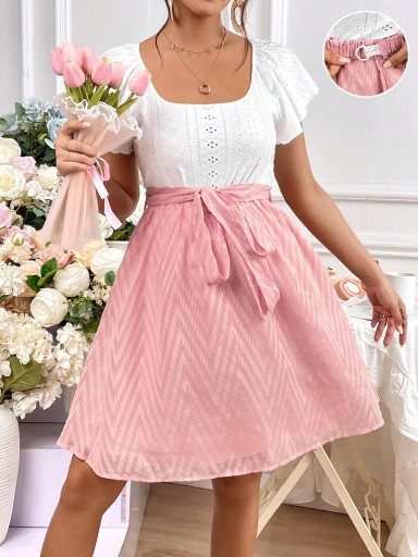 SHEIN КОМПЛЕКТ ДЛЯ МАТЕРИАЛОВ БЕЛАЯ БЛУЗКА, ЮБКА С ПОЯСОМ M 43823