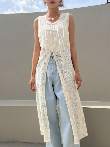 SHEIN БЕЛЫЙ ДЛИННЫЙ ПОКРЫТИЕ С ЗАВЯЗКАМИ КРЮЧКОМ L 32248